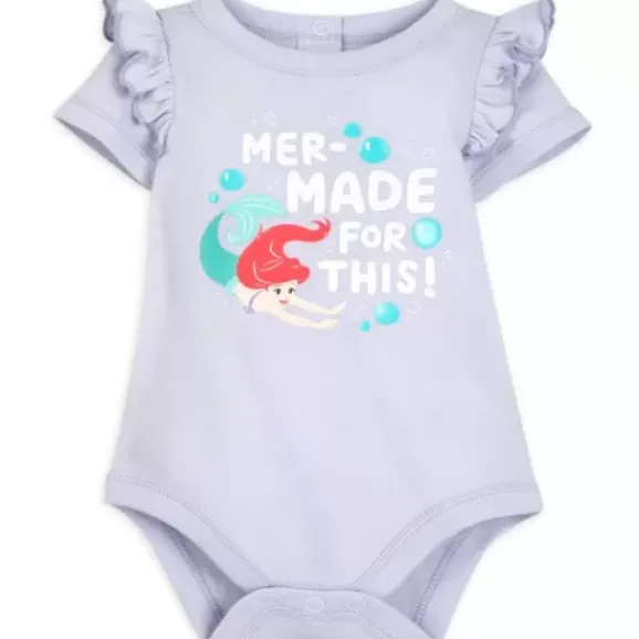 Your Little Mermaid Will Be Swimming In Compliments Wearing This Soft Cotton Bodysuit With Ariel Graphics And Ruffled Trims.