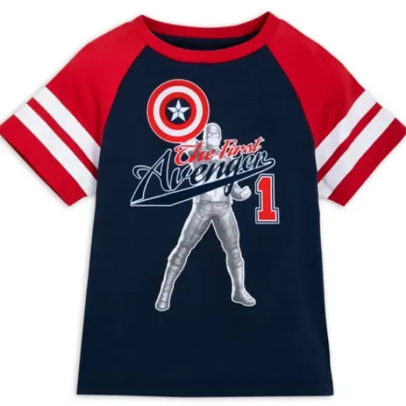 This Star-Spangled Athletic Jersey Salutes The First Avenger–Captain America Steve Rogers–For Heroic Times At Play Or In Class.