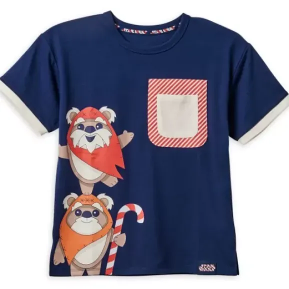 Enjoy The Holiday Season With The Cuddly Ewoks On The Front And Back Of This Soft Tee. The Star Wars Design Features Screen Art Of The Furry Inhabitants Of Endor, A Chest Pocket On A Red And White Striped Patch, And Contrast Cuffs.