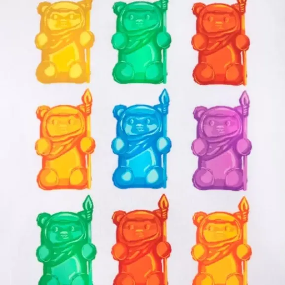Multicolor Gummy Bear Ewoks Cover The Front Of This Pullover Sweatshirt That Makes A Sweet Treat From The Star Wars Galaxy. It’s “Yub Nub” Yummy!