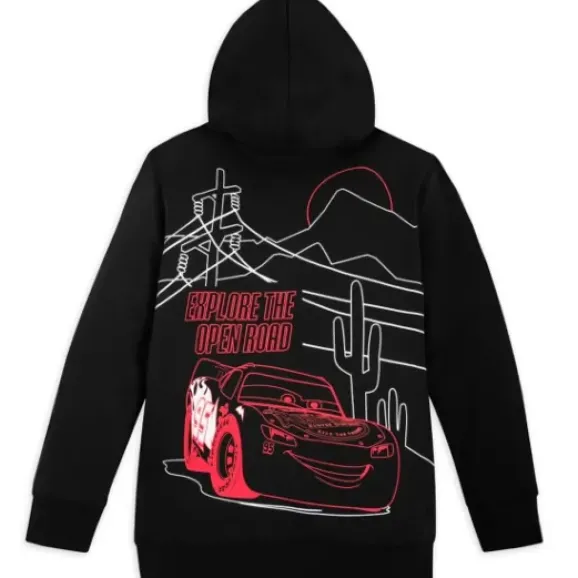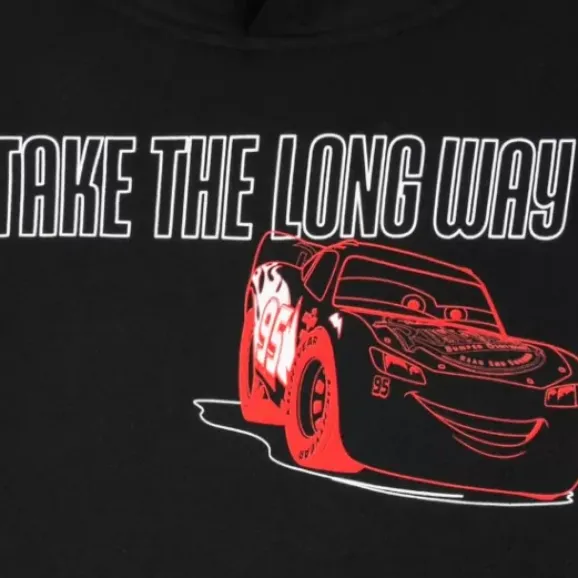 Take The Long Way And Explore The Open Road In This Cars Pullover Hoodie With Neon-Like Lightning Mcqueen Art On Both Sides.