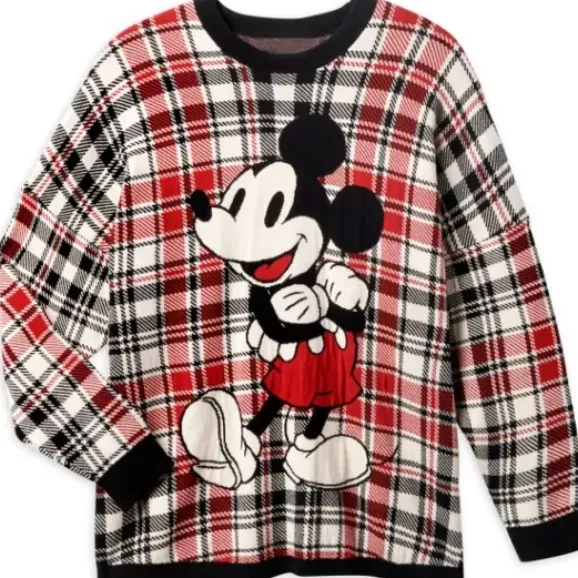 Mickey Makes Merry On This Plaid Knit Sweater With The Famous Spirit Jersey Cut. On The Back Shoulders, Our land Logo Provides A Jolly Reminder Of Your Holiday Visit.