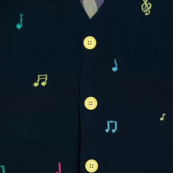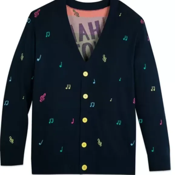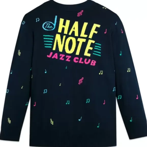 You’Ll Find A Spark Of Music When You Wear This Comfy Knit Cardigan Inspired By And Pixar’s Soul. The Colorful Allover Print Features Music Notes With The The Half Note Jazz Club Logo On The Back To Complete The Wonderful Composition.