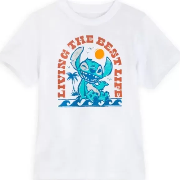 Stitch Is Living His Best Life On This Tropical Style Tee With A “Hang Loose” Hawaiian Vibe.